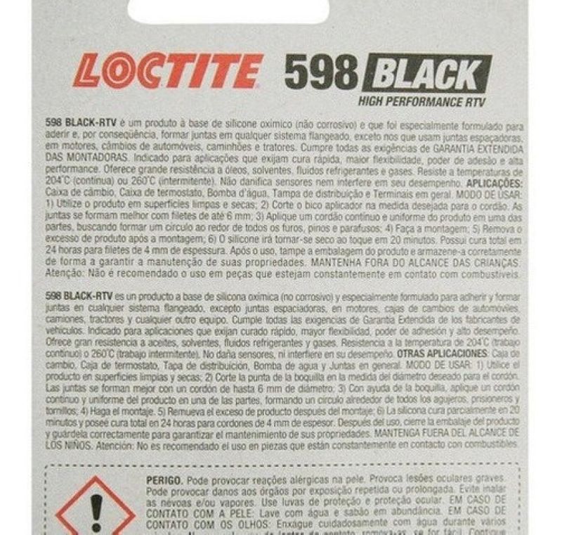 O Silicone de Alta temperatura, da Loctite, é um selante especial, próprio para aguentar temperaturas de até 204º C de superfícies como juntas de motores, fornos, caldeiras, entre outros. Outros selantes mais simples, além de não suportar, não possuem a tecnologia e os componentes necessários para fixar os elementos com eficiência, resistência contra tração e durabilidade com o passar do tempo. Por isso, o Silicone de Alta Temperatura se torna um elemento tão essencial e completo para profissionais que trabalham com superfícies expostas a altas temperaturas.Aplicações tipicasComo uma junta formada no local, o produto Loctite Black 598 foi desenvolvido para proporcionar performance superior em tipicas aplicações automotivas, incluindo cárter, bomba d’agua, vedações, diferencial, tampa de distribuição. Excelente adesivo para reparo e adesão de juntas de silicone pré-fabricadas.Eficiência e inovaçãoSuporta temperaturas de até 204º C, ou seja, é possível utilizar o Silicone da Loctite como solução de fixação para inúmeras superfícies, já que o produto possui componentes inovadores incessantemente testados e aprovados.Resistência e durabilidadeUse o Silicone da Loctite e surpreenda-se com sua resistência e durabilidade além do tempo. Fixe as superfícies e não perca nenhum trabalho.Conteúdo da Embalagem1 Tubo Silicone Preto Loctite 85gImportante:- Garantia de 3 Meses.- Trabalhamos somente com produtos Novos e com Garantia.- Recomendamos que a instalação seja feita por profissional especializado e não nos responsabilizamos pelo mau uso do produto.