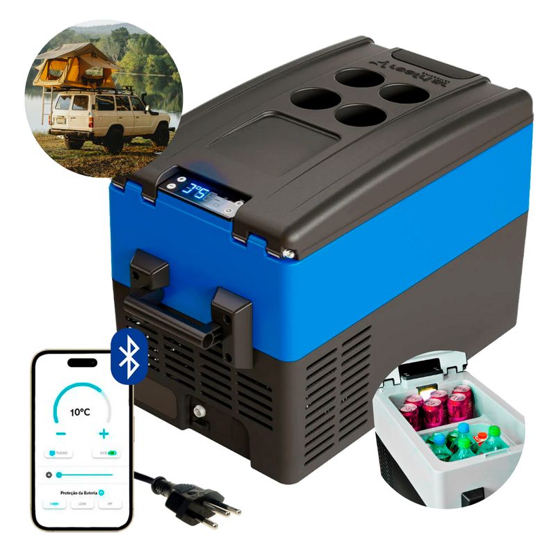 Considerada a Favorita pelos Caminhoneiros pela Versatilidade na Cabine dos MotoristasA geladeira portátil 31 litros com controlador digital possui um design arrojado, funções claras, precisas e acessíveis ao seu usuário. Esse modelo de geladeira conserva alimentos e bebidas sempre frescos, podendo também ser utilizada como congelador, adaptando-se as necessidades do usuário. Este produto possui um amplo espaço interno com capacidade de 31 litros e é um equipamento de fácil transporte, tornando-se perfeita para quem não dispensa a comodidade na hora de viajar.Higienização de sua GeladeiraPara facilitar ainda mais na hora da limpeza, a geladeira resfriar de 31 litros conta com uma abertura em seu fundo, especial para a higienização de seu interior utilizado para a remoção de fluidos e demais líquidos.A Função Turbo ResfriamentoAinda permite um rápido resfriamento dos alimentos e líquidos no interior da sua geladeira. Ao ser pressionado o botão, a função Turbo irá funcionar durante 1 hora ou até atingir a temperatura desejada. A qualquer momento pode ser pressionado o botão novamente para cancelar a função. Salientamos que o consumo de energia irá aumentar durante este período e é aconselhável utilizar esta função enquanto o motor estiver ligado. O Controlador digital com 6 opções para ajuste de brilho sendo um deles automático onde o display reduz para o brilho mínimo após 60 segundos.Conexão por BluetoothAlém de ser o diferencial dessa geladeira, imagine só facilitar sua vida na estrada estando fora de seu veículo e poder ligar ou desligar sua geladeira, ou ainda naqueles momentos com a família enquanto todos se divertem, você não precisa deixar ninguém de lado e ir até a geladeira para alterar a temperatura, você tem o controle na palma da mão por seu celular, veja só a praticidade.Como conectar meu Smartphone com a Geladeira via Bluetooth ?Bateu a curiosidade ? Vamos deixar as instruções de conectividade Bluetooth abaixo para você garantir todo o controle na palma da sua mão, para quando quiser e/ou puder1. Você pode Baixar o aplicativo da Resfriar pela Playstore ou Appstore