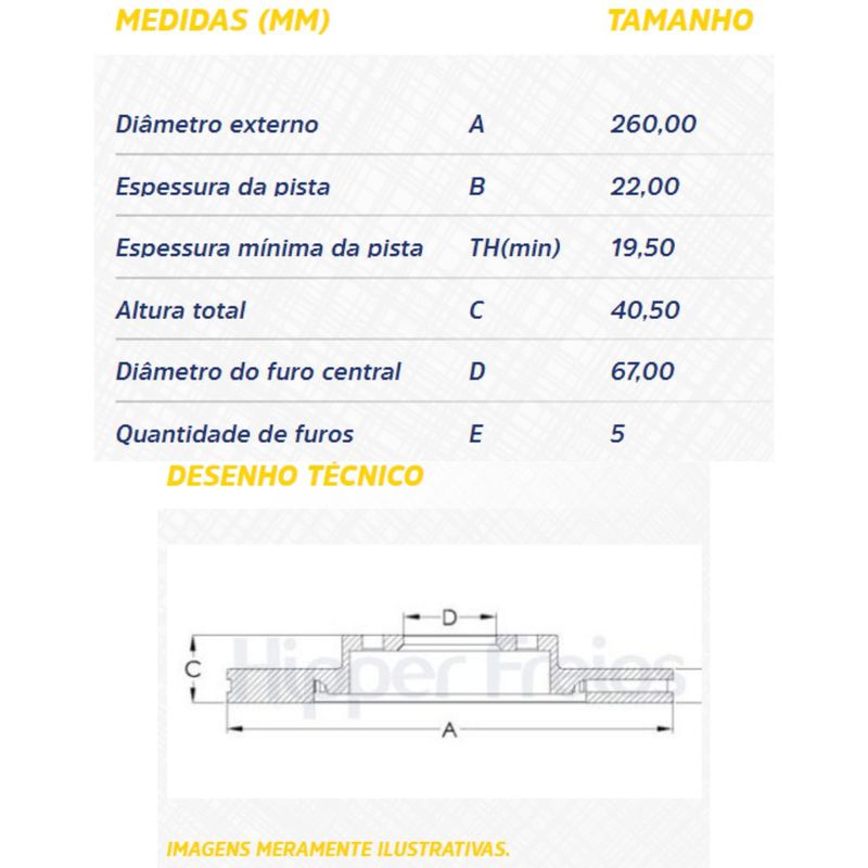CarroFreiosDisco de FreioHf212 - Disco Freio Diant Vent 260Mm 5 Furos - Classe A160 97 / A190 99 Em Diante - Hipper Freios