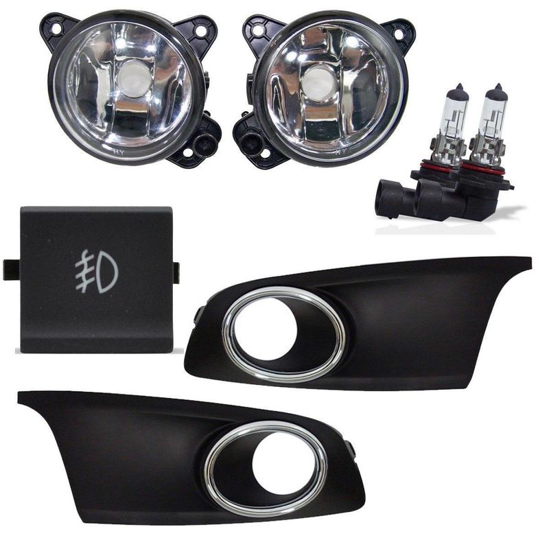 IluminaçãoKit Farol Milha Neblina Fox 2014 Moldura Aro Cromado Botão Painel Central