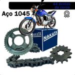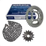 O Kit de relação de transmissão para moto da Nakata é uma solução completa para a substituição de componentes vitais do sistema de transmissão de motocicletas. Ele inclui uma variedade de peças, como correntes, coroas e pinhões, projetados para garantir um funcionamento eficiente e confiável da transmissão. Fabricado com materiais de alta qualidade e durabilidade, o kit oferece resistência ao desgaste e à corrosão, proporcionando uma condução suave e segura. O Kit de relação de transmissão para moto da Nakata oferece uma solução conveniente e confiável para a manutenção e reparo do sistema de transmissão, assegurando um desempenho ideal da moto.Especificações:- Aço 1045;