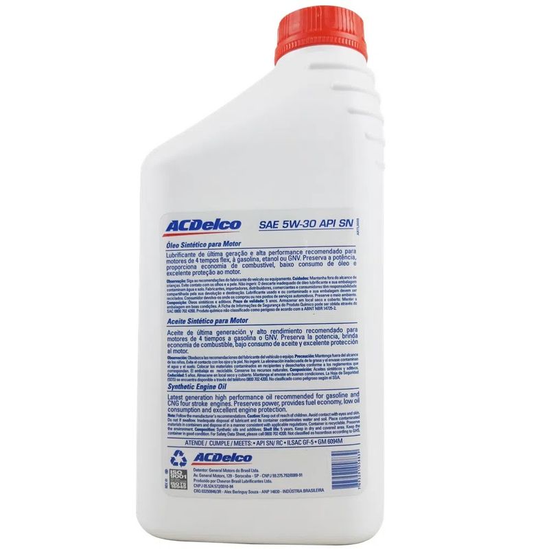 Óleo sintético motor SAE 5W30 API SN Acdelco 98550168Características:Altura : 0.28 MetrosComprimento : 0.15 MetrosCondição do item : NovoLargura : 0.07 MetrosMarca : AcdelcoMPN : 98550168OEM : 98550168Peso : 1 KgTempo de garantia : 3 mesesTipo de Garantia : Garantia de fábricaAPLICAÇÃO GENÉRICA:Verificar o Manual do Proprietário para o uso corretoCARACTERÍSTICAS: SAE 5W-30 API SNVeículos (aplicações):Chevrolet Agile EFFECT 2013/2014Chevrolet Agile LT 2010/2013Chevrolet Agile LTZ 2010/2014Chevrolet Astra B Hatch 2p ADVANTAGE 2005/2011Chevrolet Astra B Hatch 2p BÁSICO 2002/2003Chevrolet Astra B Hatch 2p ELEGANCE 2004/2010Chevrolet Astra B Hatch 2p ELITE 2004/2008
