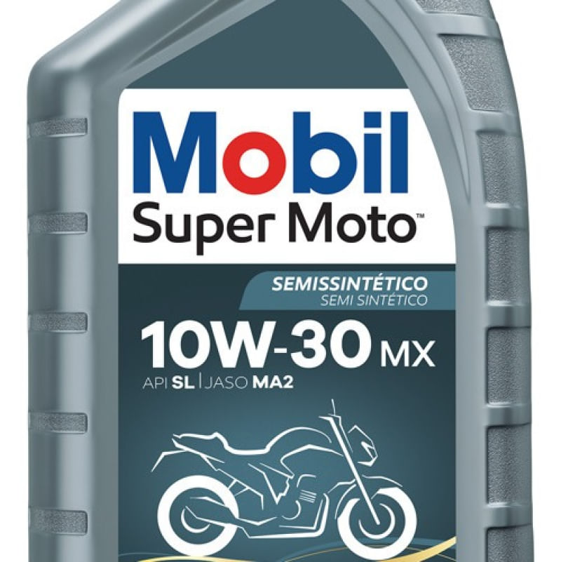 Mobil Super Moto 4T MX 10W30Óleo para motores 4 tempos semissintético de alta performanceDescrição do ProdutoMobil Super Moto 4T MX 10W-30 é um óleo semissintético multiviscoso de alto desempenho, desenvolvido e testado para proporcionar efetiva proteção contra o desgaste. Altamente estável aos esforços mecânicos, mantém a viscosidade mesmo em condições severas. Resistente à oxidação, evita a formação de depósitos e proporciona vida mais longa para o motor devido à formação de uma resistente película de lubrificação. Sua composição semissintética e aditivos selecionados fornecem excelente fluidez para reduzir o desgaste do motor na partida, além de proteger a transmissão e a embreagem durante toda operação da motocicleta. Atende aos requisitos da especificação JASO MA2 e possui nível de qualidade API SL. A formulação de Mobil Super Moto 4T MX 10W-30 é cuidadosamente balanceada para proteger os dispositivos de pós-tratamento que podem ser encontrados nos sistemas de escape das motocicletas modernas.Características e BenefíciosO Mobil Super Moto 4T MX 10W-30 apresenta as seguintes características e benefícios de desempenho para os usuários:Fornece proteção antidesgaste para uma vida longa do motor e da transmissãoAjuda a manter a limpeza do motor graças à sua formulação especialmente balanceadaÓleo com base super premium que proporciona alta estabilidade de oxidação e volatilidade reduzidaTecnologia com teor de fósforo reduzido para proporcionar proteção do catalisadorPropriedades de fricção para um desempenho adequado de embreagemFormulação de alta resistência ao cisalhamento para manutenção do grau de viscosidade