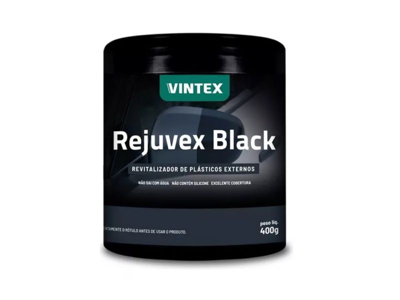 Descrição GeralRejuvex Black é um revitalizador de plásticos que renova e dá brilho em plasticos externos de automóveis. Desenvolvidos com matérias-primas especiais, o produto é indicado para uso em oficinas de repintura automotiva, principalmente para os plásticos originalmente mais escuros.